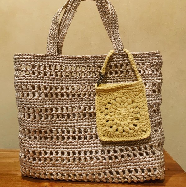 【編んでみた動画】楽しいかぎ針編み メリヤスこま編みの編み込みバッグ