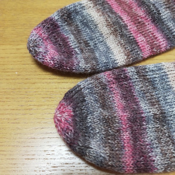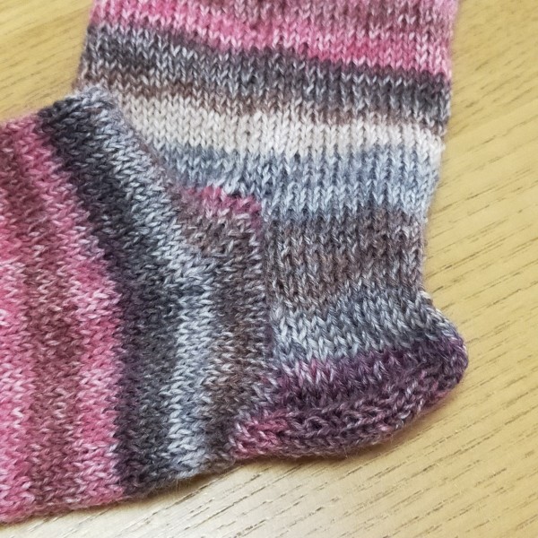 段染めソックヤーンでボックスかかとの靴下を編みました。