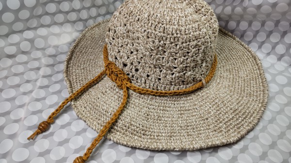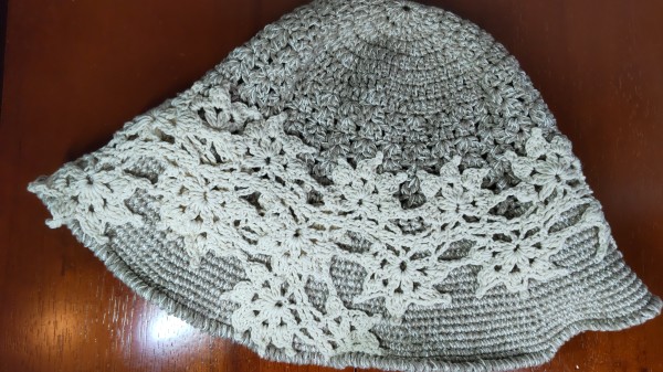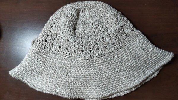 | 帽子修正版 以前完成させた帽子の修正をしました。 麦わら帽子風からバケットハット風に変更し、飾りも紐からモチーフに変更しました。 |