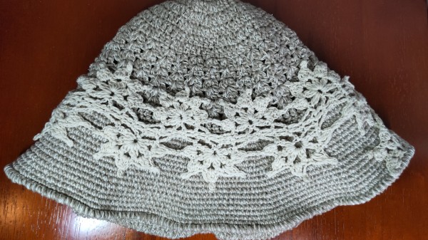 以前完成した帽子を、何度か被ってみたのですが、つばの部分が麦わら帽子のようになっていたためか、波打ってしっくり来なくて、つばを編み直すことにしました。