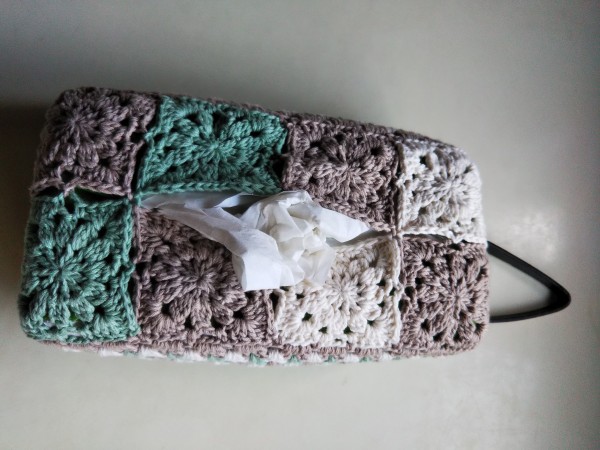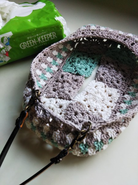 100円均一の取ってを編み込み、脱衣場に掛けて使っています。