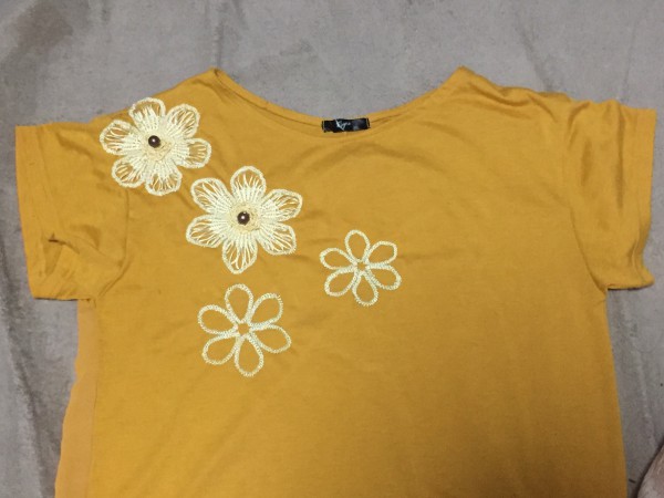 汚れの部分だけに小さなお花を配置しても良かったのですが、大輪の花にしてみました。