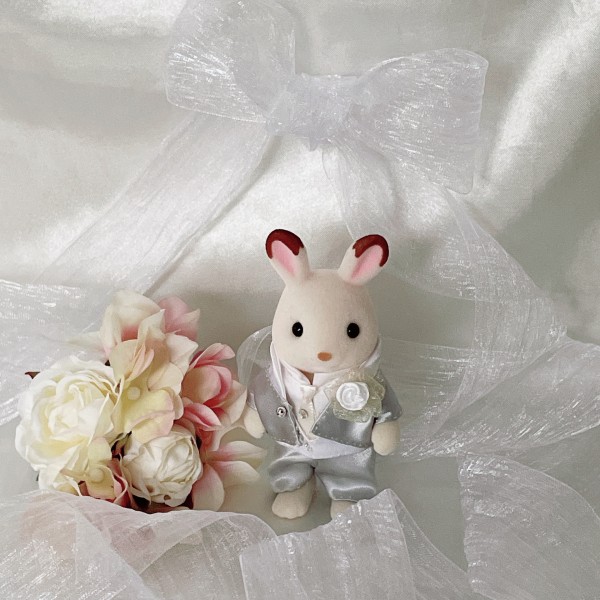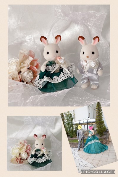 シルバニアのお人形に、娘達の結婚式の時に着た衣装を着せたくて頑張ってみました。似たような生地がなくて、幅広のリボンを使ってドレスを縫いました。とても小さいので苦戦しましたが、、自己満足ですが何とか完成して良かったです。