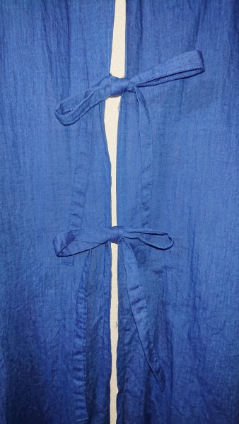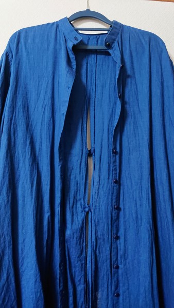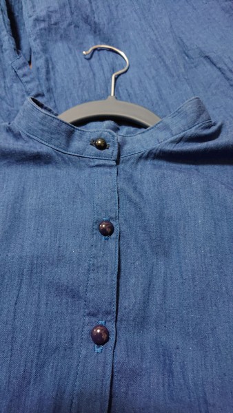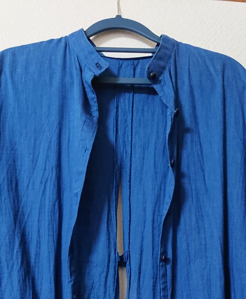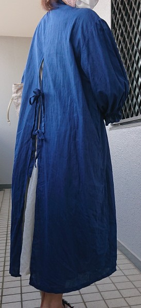 バックスリット開きのワンピースです。羽織ものですがワンピースの本を見て作ったのワンピースということで。1m300円程度の安い生地で作りましたが、出番は多いです。