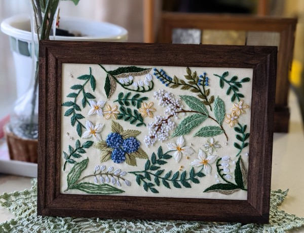 ナチュラルな雰囲気の刺繍フレームになりました。