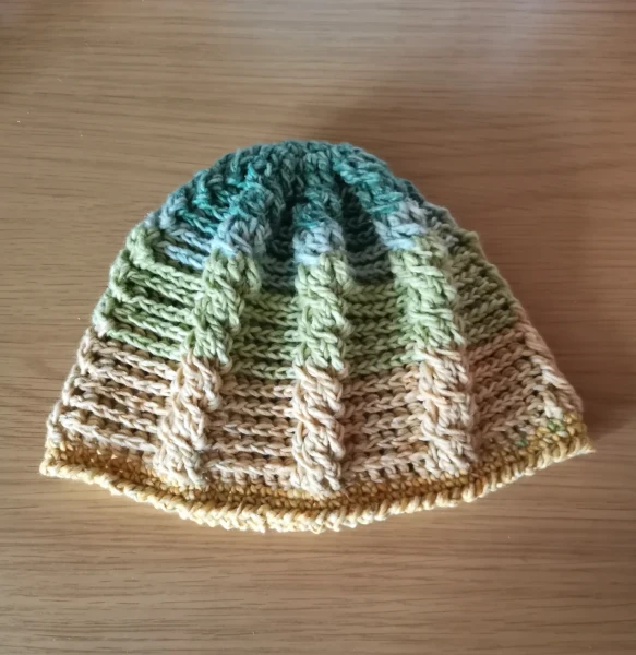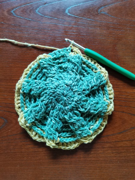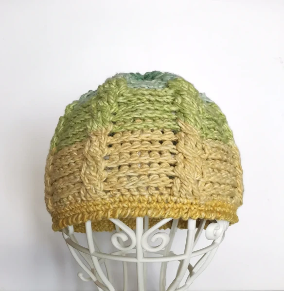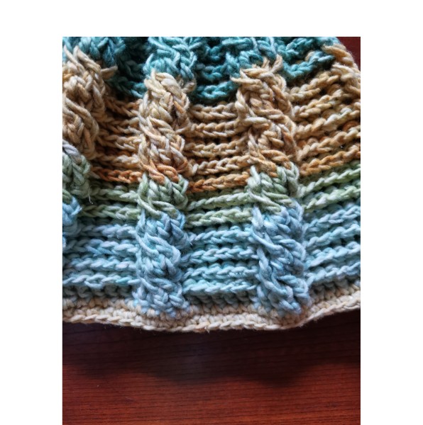 表引き上げ編みと裏引き上げ編みでなわ編みのような模様になる編み方です。