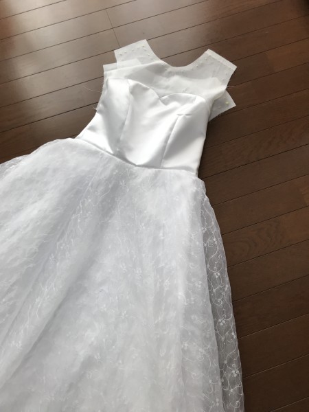 | 娘のウエディングドレス製作に挑戦。ついに完成!ソフトチュールが余ったのでショートベールも作ってみました。 | |