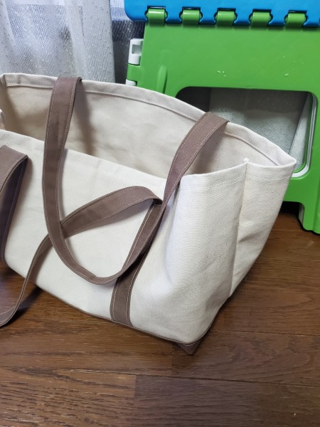 8号帆布のトートバックです!裁断間違えて横長になってしまいました(。>д<)