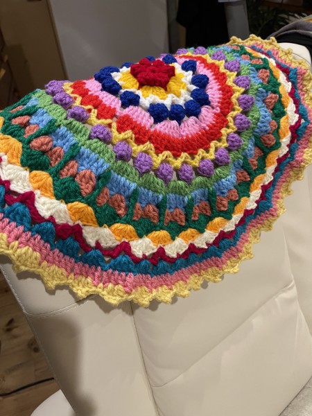 大きめのマルチカバーを作成しました。大きくなるにつれて可愛さが増してくるのでどこでやめたらいいのか分からなくなる位お気に入りが出来ました。