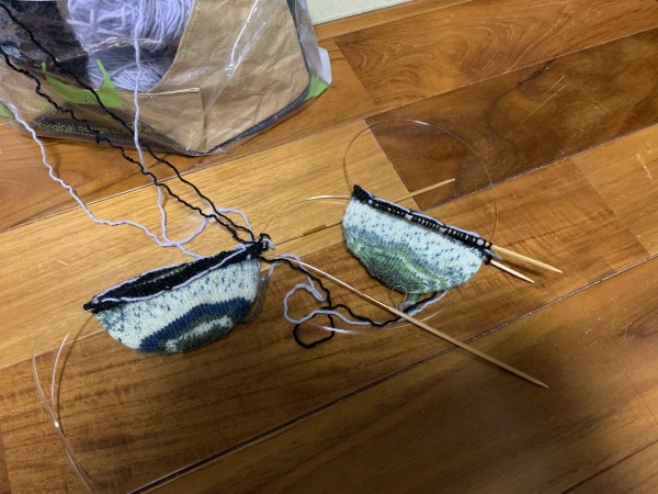 一回踵まで編んで入らなかったので、つま先までほどき、編みなおしました!去年からの念願で編んでみたかったので、良かったです!