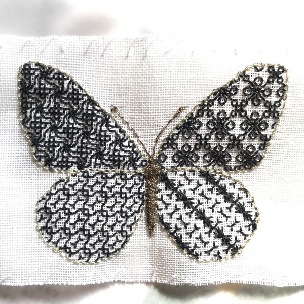 | タテハチョウの仲間、オオゴマダラをブラックワークで刺繍することにしました。 モチーフを組み合わせながら、制作中です。 いつも一気に仕上げてしまう、ちいさな刺繍ですが、ブラックワークは手がかかるので珍しく途中経過もレポートさせていただくことができました。 |
