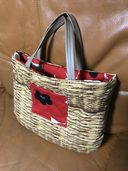 底と持ち手は合皮の布で切り替え。