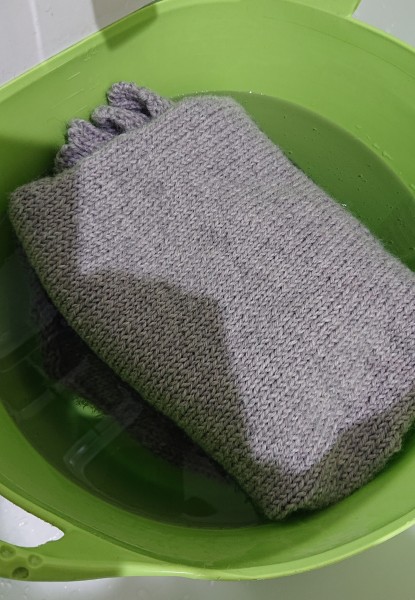 水通し初めてするのは勇気がいりましたが、ゴム編みの段差がなくなりスッキリ。なおかつふんわりとした風合いに仕上がりました。