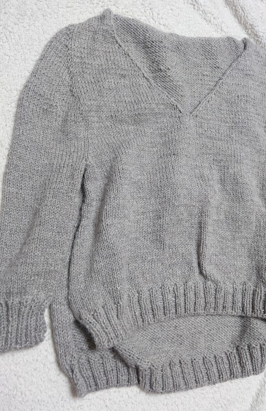 | オンザビーチというシンプルなVネックのトップダウンセーターを作りました。 | |