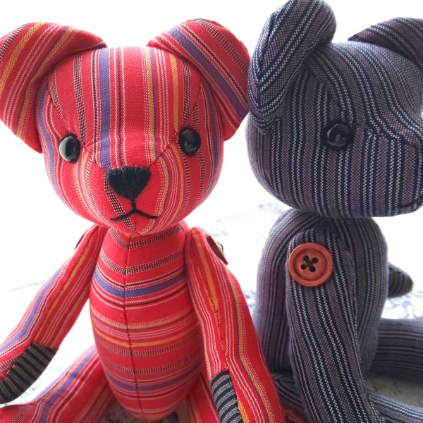 川越の伝統織物「川越唐桟」を使ってテディベアを作りました。