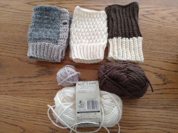 | 余り糸消費に ハンドウォーマーを3種類編みました。 左上からシンプルに一色で木立編みの模様、右上は娘のリクエストでゴム編み風でちょっと手首も長めにしてます。 茶色が微妙に足りないかも…と手首の色を替えたんだけど、娘は一色が良かったらしいです(-.-;)結果的に この編み方が一番毛糸を使わなくて足りたかもしれません。 下のグレーのは手の甲だけモコモコの毛糸を使って、お店で売ってたのに似せて作ってみました。 冬場も手袋をはめても指先が使えるほうがいいので、私はこのタイプのハンドウォーマーが重宝します♫ これに使った余り糸がまた微妙に残ったけど、ほんの少しづつなので、次はモチーフとかぐらいしかもう無理かなぁ 他の色んな余り糸ばかりでモチーフを編みためて パッチーワークみたいにもしてみたいなとも思っています。 |