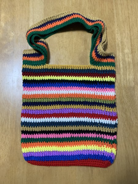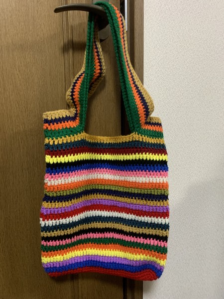 娘のリクエストで、YouTubeにあったバッグを作りました。残り毛糸を使うのにもちょうど良かったデス