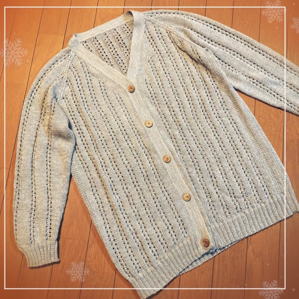 | カーディガンを編んだ事がないかも…と思い編んでみることに。 セーターを編む時、ほぼ毎回、身ごろから拾い目をして袖を編むのですが 今回は袖口から編み、後ではぎ合わせるという…ちゃんと合わさるのだろうか? と不安に思いながら、パーツを編んでいました。 編みあがったのは3ヶ月程前。ボタン付が面倒で放置。素材的にもう寒い? |