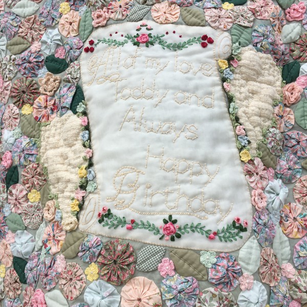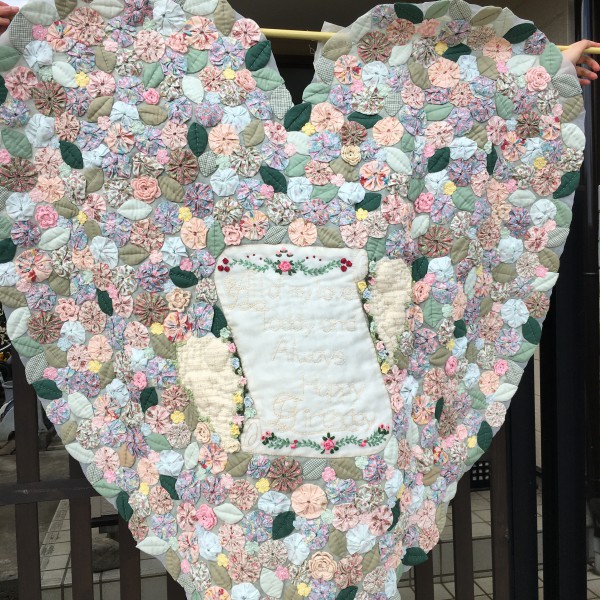 娘が赤ちゃんの頃、入院してた時に作ったヨーヨーキルトを大分経ってから、キルトの仕上げました。