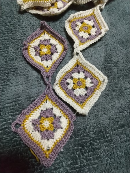 モチーフを編みながら繋げていく。13枚編み繋げました。130枚編まないと…あと117枚!頑張ります。