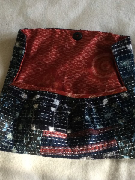 かすりの端切れをつないでミシンで刺子風ステッチをかけて