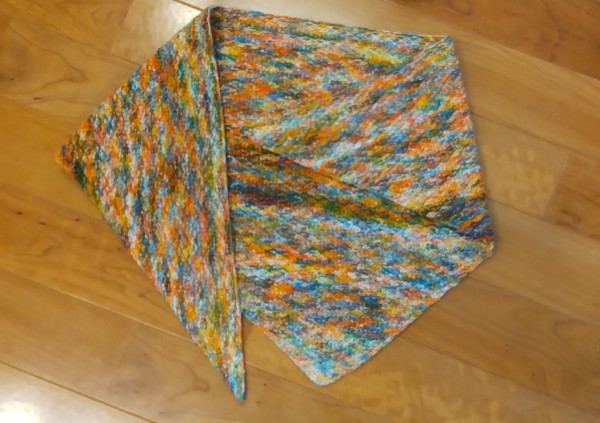 | 毛糸だま2022年冬号の35pのBを参考にした三角のショールです。 左右が対象でない変わった感じに出来上がりました。 |