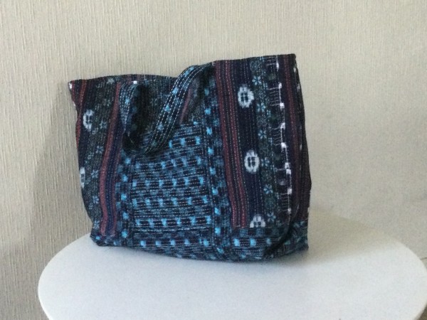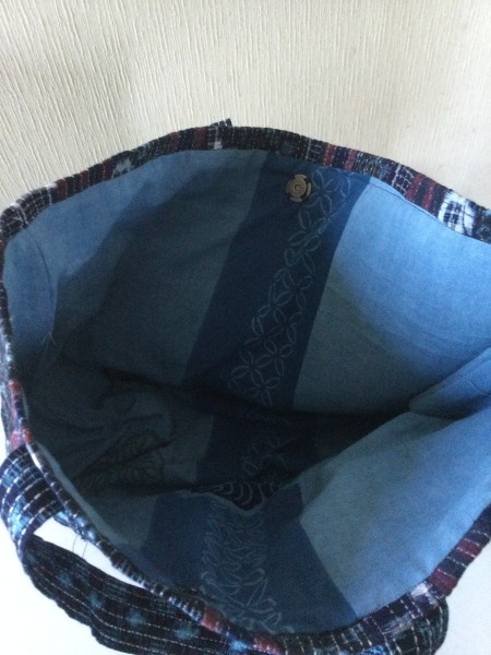 かすりの端切れを繋いでミシンで刺子風ステッチをかけた