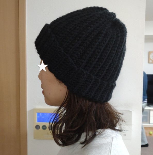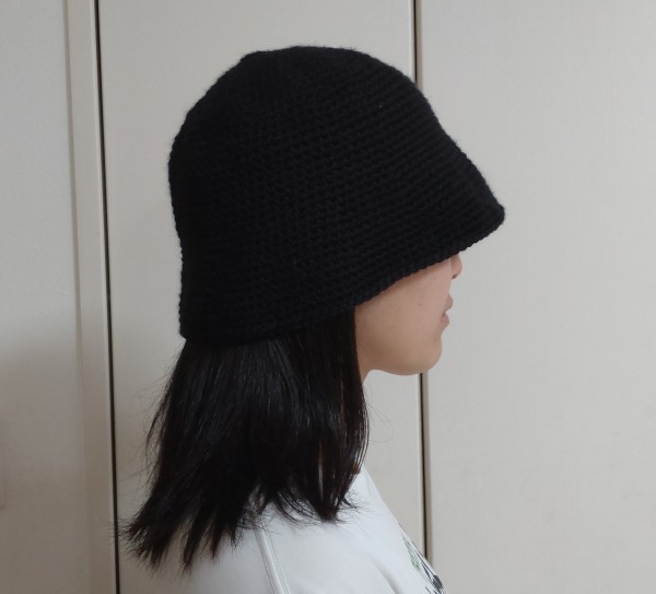 ゴム編み風のシンプルなニット帽、細編みのシンプルなニット帽とバケットハット。