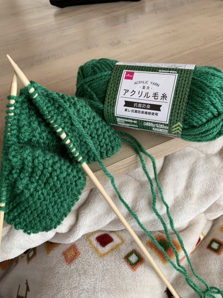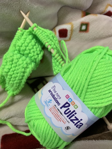 編む編む編む。グリーン系、