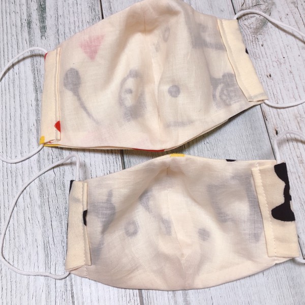 手ぬぐいとガーゼでレディースサイズとキッズサイズの布マスクをつくりました。ガーゼが薄めなので二重にすればよかったと後で思いました。次回の制作に活かそうと思います。