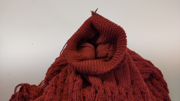 衿のゴム編み。長く編んで、折り返してまつることにします。厚みのある衿が、暖かくて好きなので…