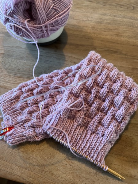 もう片方はサクサク進んであとは伏せ止めするだけになりました。間をあけると模様編みの規則を忘れちゃうから、やはり続けて編むのがいいなと再確認。でもついつい編みかけ幾つも作っちゃうんだよな。
