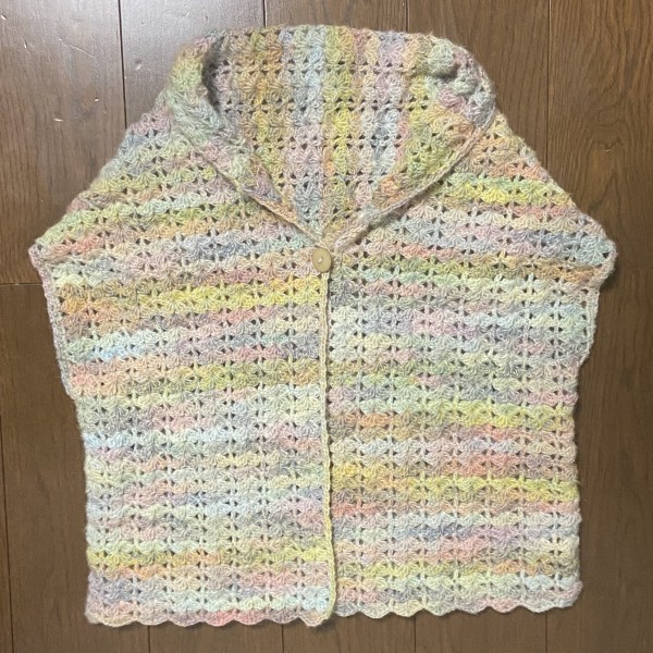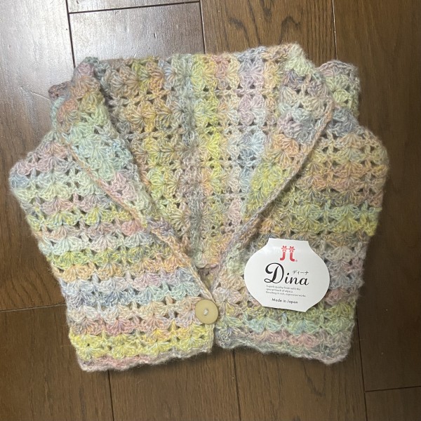 2玉分編めました。全体で7玉分ぐらい必要になりそうなので、ある程度編んだら毛糸を買いたそうと思います。