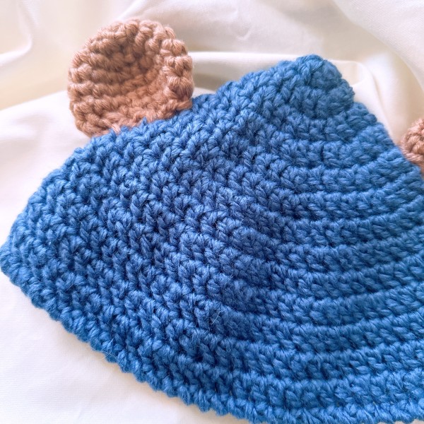 さんかく帽子は簡単に長編みで編みました!くま耳もつけてかわいくかぶれます!