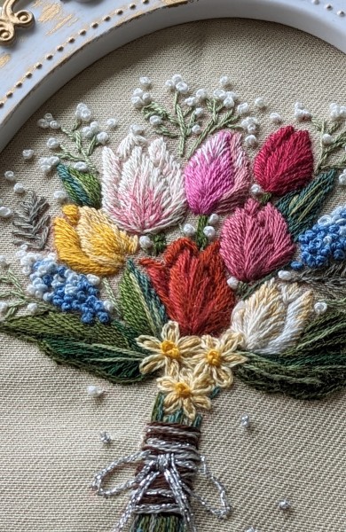 色も形も多種多様で多彩なので、最初は難しかったのですが、作っていくうちに自分なりに好みのチューリップと刺し方が決まっていく感じです。