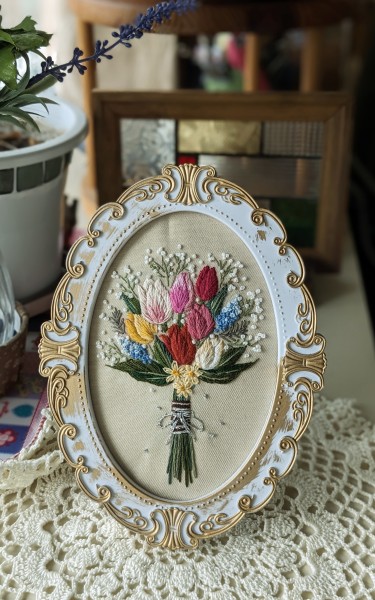 ラン 2年 春にふさわしいチューリップの刺繍ですね。大きさや、色など私好みです。 大きすぎると出来上がるまでに時間が掛かりすぎると思いますので私にはピッタリと思ってます。素晴らしいです。 + 1 件の返信 最終返信:2年前