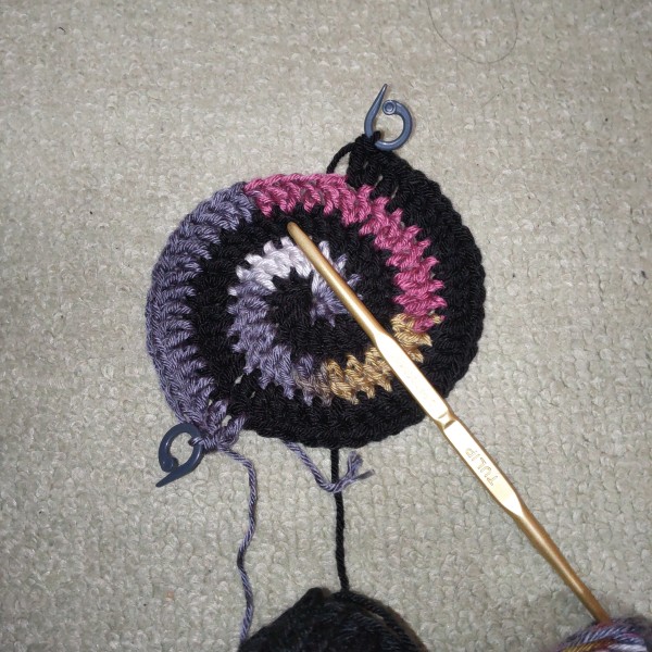 いつも円形編む時はマーカーほとんど使わないんだけど、こいつはマーカー必須だな。