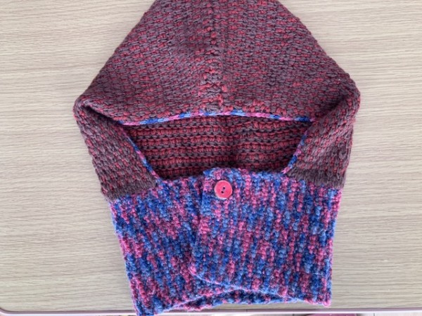バラクラバはかぶるタイプの物みたいですが、デザイン的に前開きにしたくてボタンホールとボタンをつけました