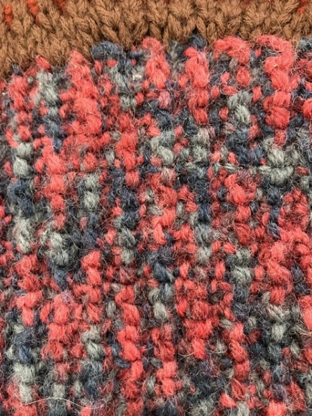 リバーシブル編みの首周りが編み上がりました