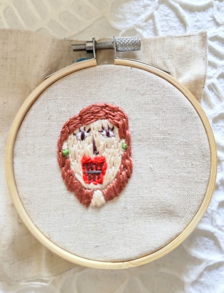 個性的なお姉さんを刺繍に