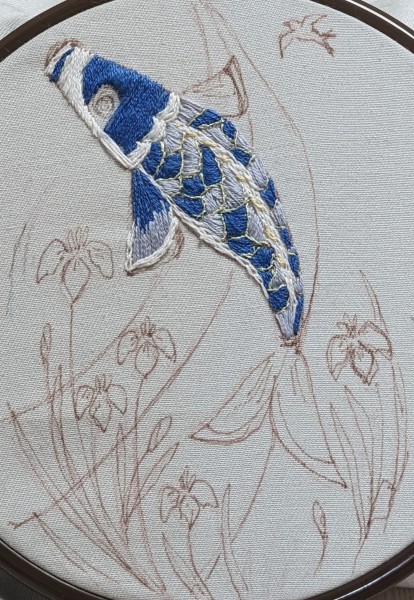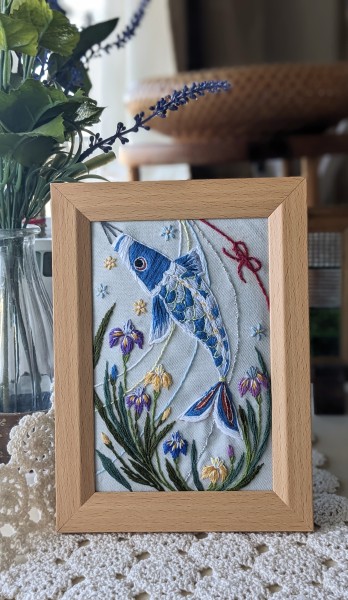 鯉の鱗の刺繍は大変ですが、配色を考えながら作っていくのは楽しいです。