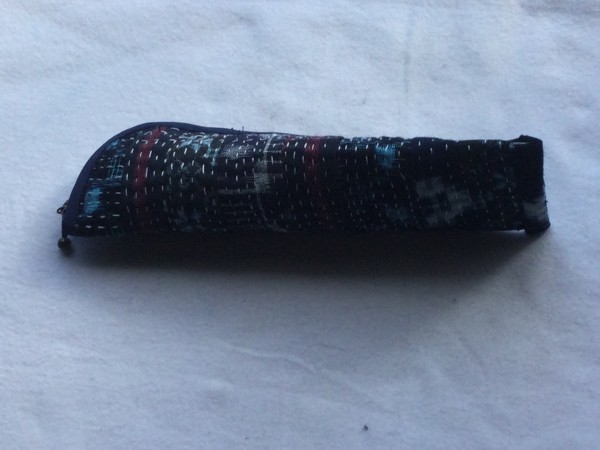 絣地に刺し子をしてペンケースにする