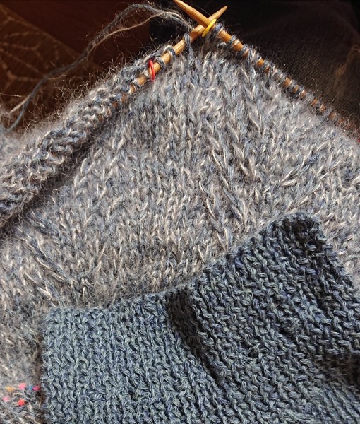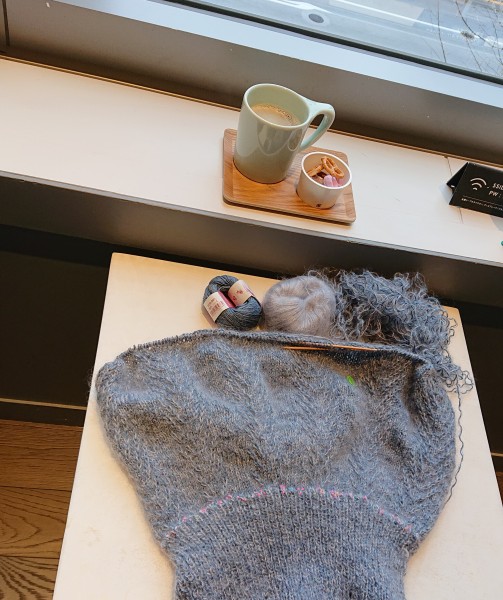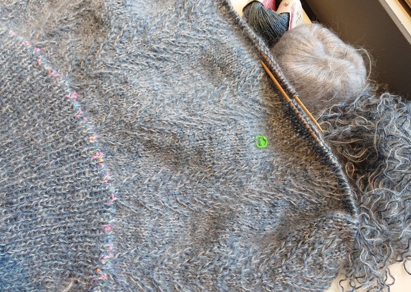 買い置きしてあったgepardのkid seta使用、暖かいふんわりツルツルした編み地になり、間に合えば、春物として使えそうです。