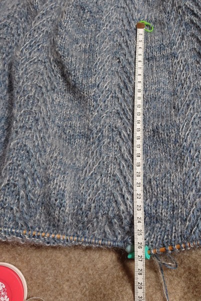 増し目無し部分32cm→現在26cm,減1cm約31cmまで伸ばす