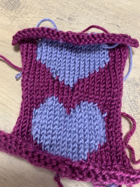 メリヤス編みとハート模様のモチーフ