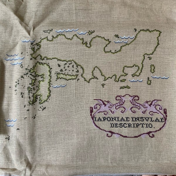 | 日本地図のクロスステッチがしたくて、オルテリウスの古地図を参考にして図案作ってみました | |