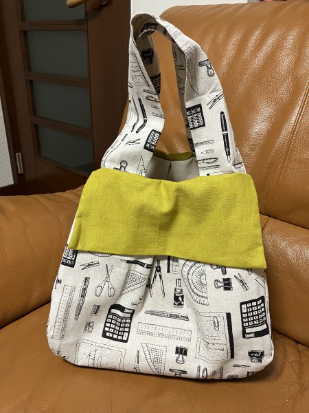 マチがゆったりでとにかく沢山入ります。持ち手の幅を広めにしたので、腕にも肩にも負担がかからず、持ちやすくなっています。