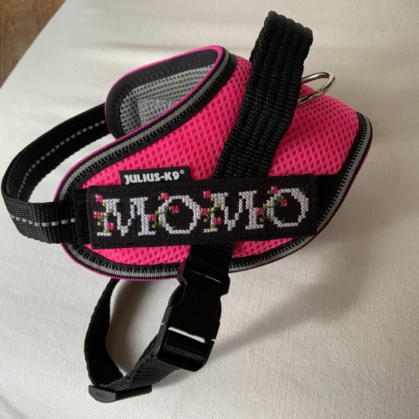 愛犬モモの夏用のハーネスのネームタグ