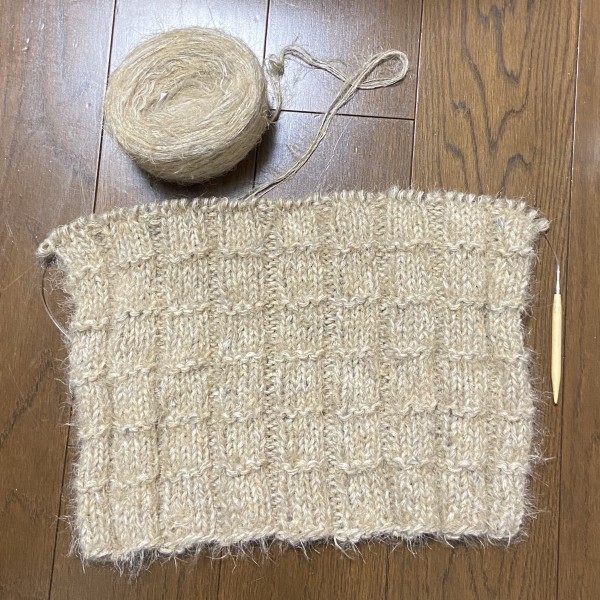 さすがにこの糸を扱うのはちょっと暑いのでどこかのタイミングで袖と脇をとじて完成させようと思います。