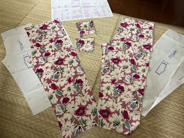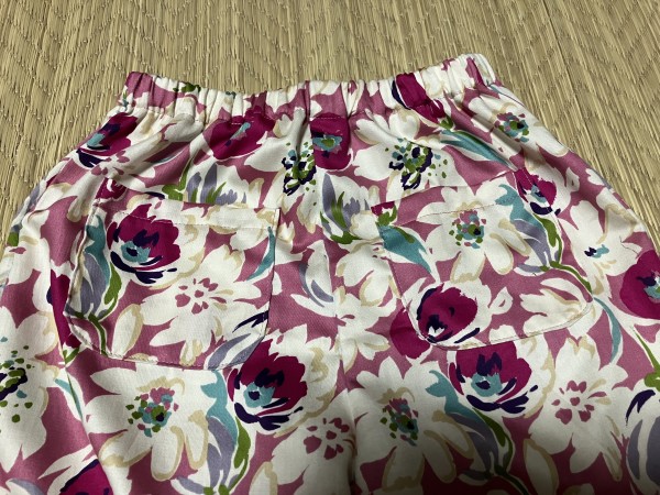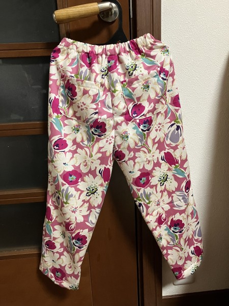 姪っ子ちゃんの夏用長ズボン。日焼け対策でフルレングス、綿のサラッとした生地で涼しく履けるように。花柄がとてもお気に入り。